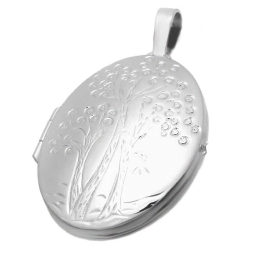 Großes Medaillon mit polierter Vorderseite und Lebensbaummotiv in 925 Sterlingsilber "Made in Germany",